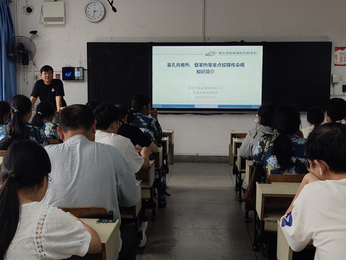 为增强师生蚊媒传染病防控意识,维护校园健康环境,近日,我校特邀黄石市疾病预防控制中心专家来校,在教育大楼1102教室成功举办了一场以“基孔肯雅热、登革热等重点蚊媒传染病知识”为主题的专业知识讲座。本次活动吸引了近百名师生代表到场聆听。