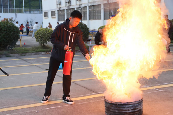 演练过程中,师生们在消防人员指导下有序进行疏散逃生,观摩云梯救援演示,并积极参与灭火器实操训练。活动现场还开展了消防知识有奖问答,消防员详细讲解了常见消防器材的使用方法,展示了宿舍违规电器,进一步增强师生的安全防范意识和应急自救能力。