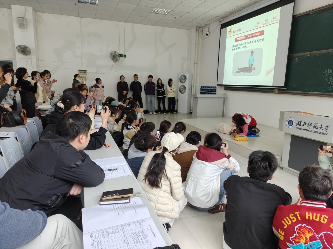 2026年3月28日至29日,由湖北师范大学校医院、校团委和黄石港区红十字会共同举办的急救救护员培训,在湖北师范大学人文楼21AT05教室成功举行。