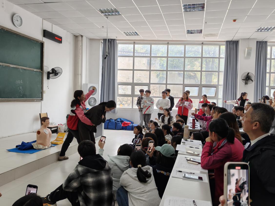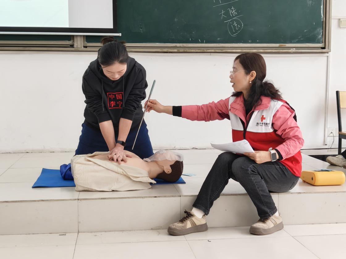 在此次课程培训中,师生们系统学习了心肺复苏(CPR)、自动体外除颤器(AED)的使用、气道异物梗阻解除、创伤止血包扎等核心急救知识与技能。来自红十字会的张红梅、熊永芳两位老师,凭借深厚的专业知识和极具亲和力的授课艺术,将严谨的操作过程转化为通俗易懂的讲解演示。